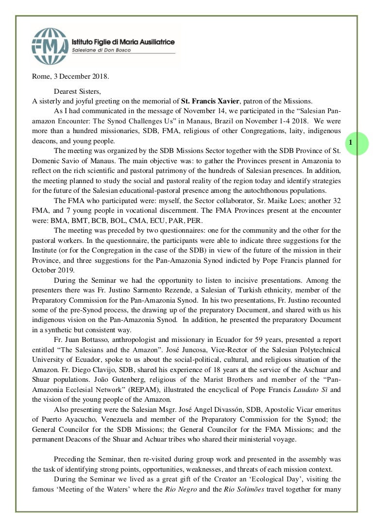 Lettera Del Rettor Maggiore In Risposta Alla Dichiarazione Di