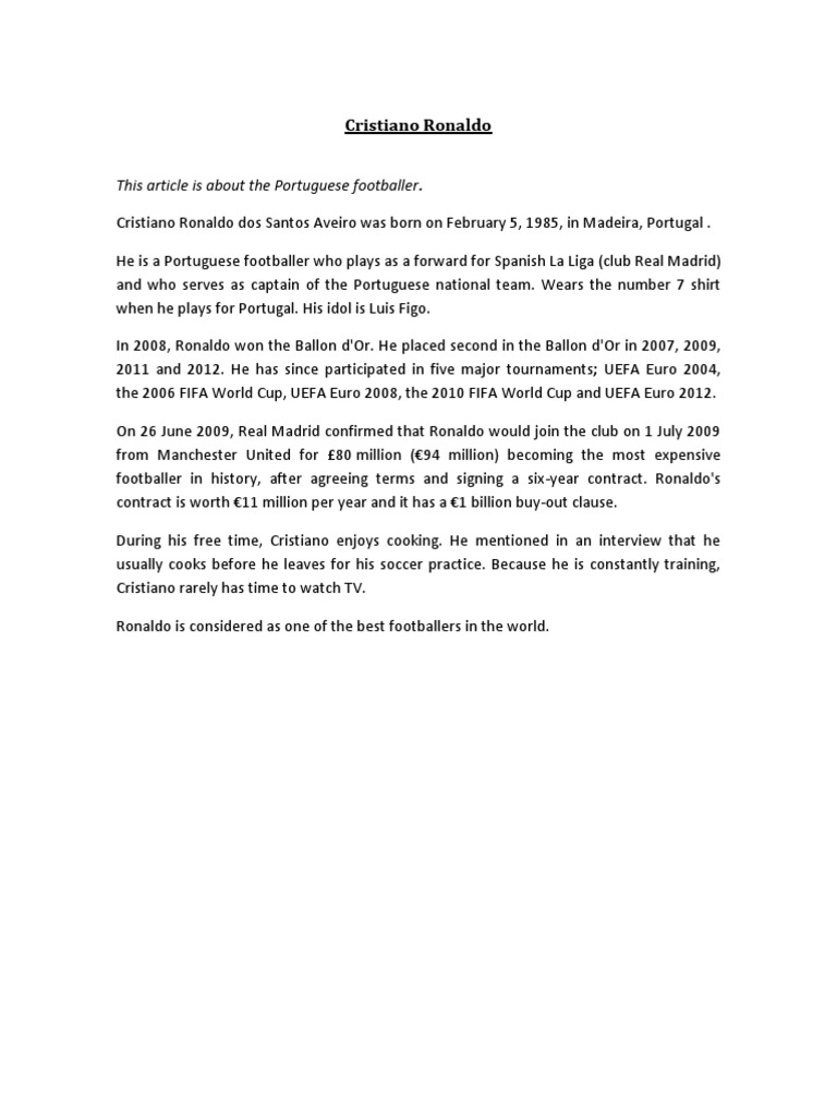 Cristiano Ronaldo Biography Pdf