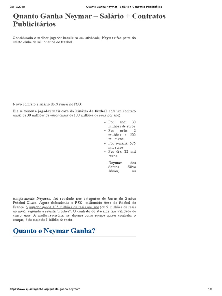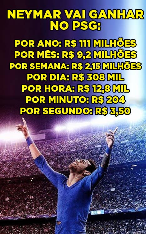 Por ano r 11244 sem o 13o e r 12181. Quanto o do trabalhador de salario minimo. Neymar joga atualmente no paris saint germain da franca.