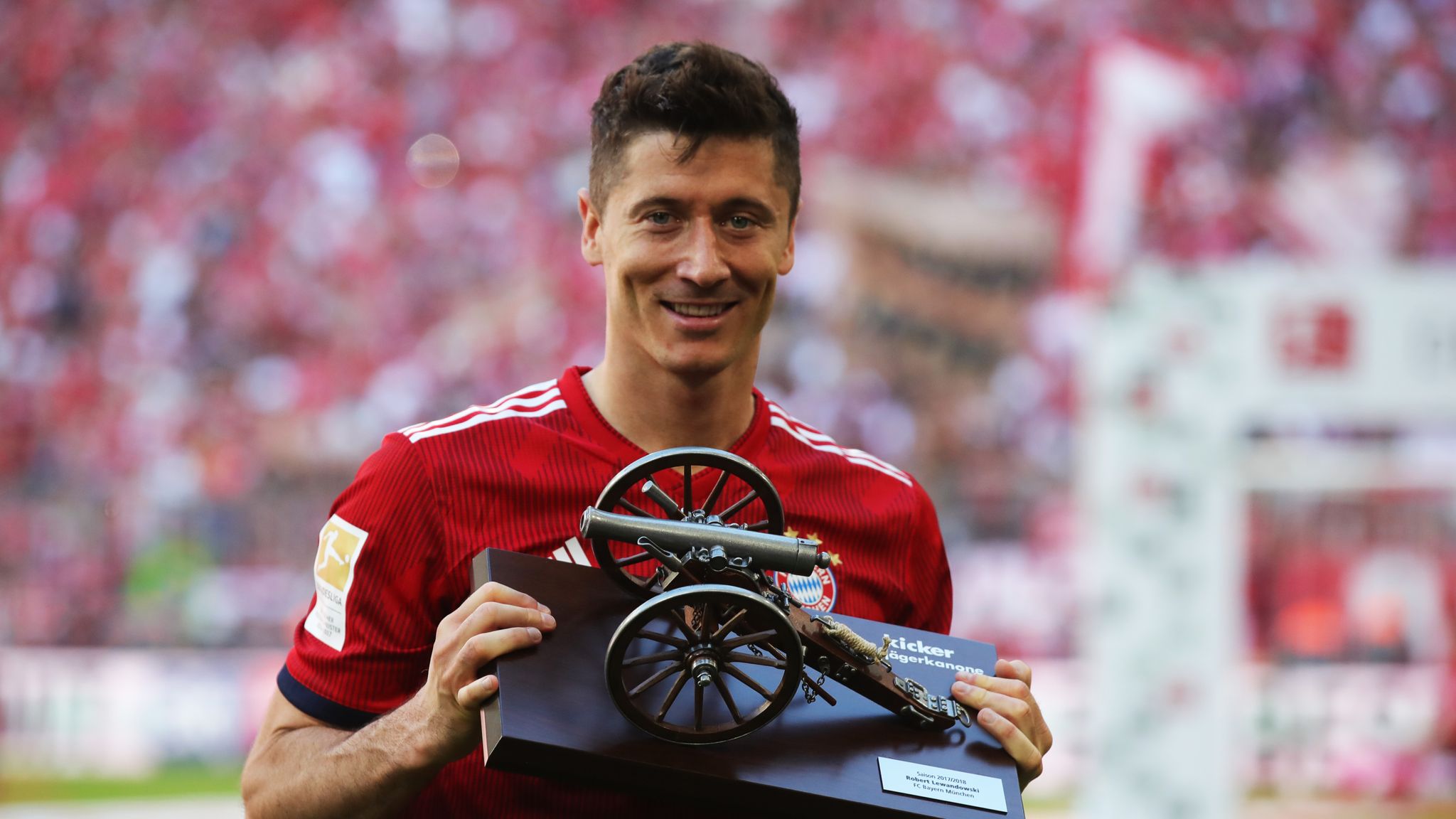 Download Wallpapers Robert Lewandowski With Cup 2019 Bayern