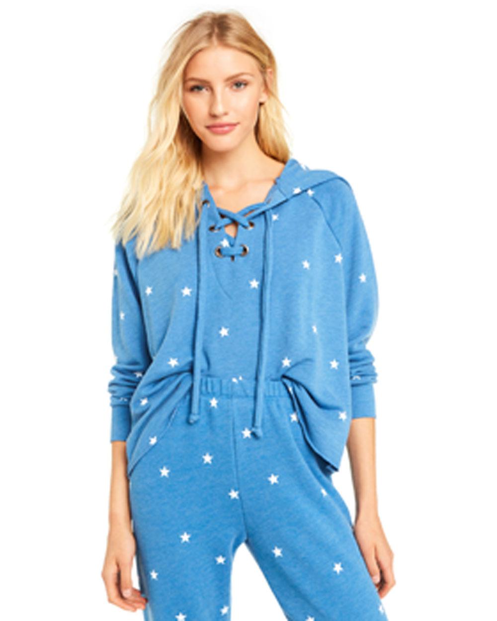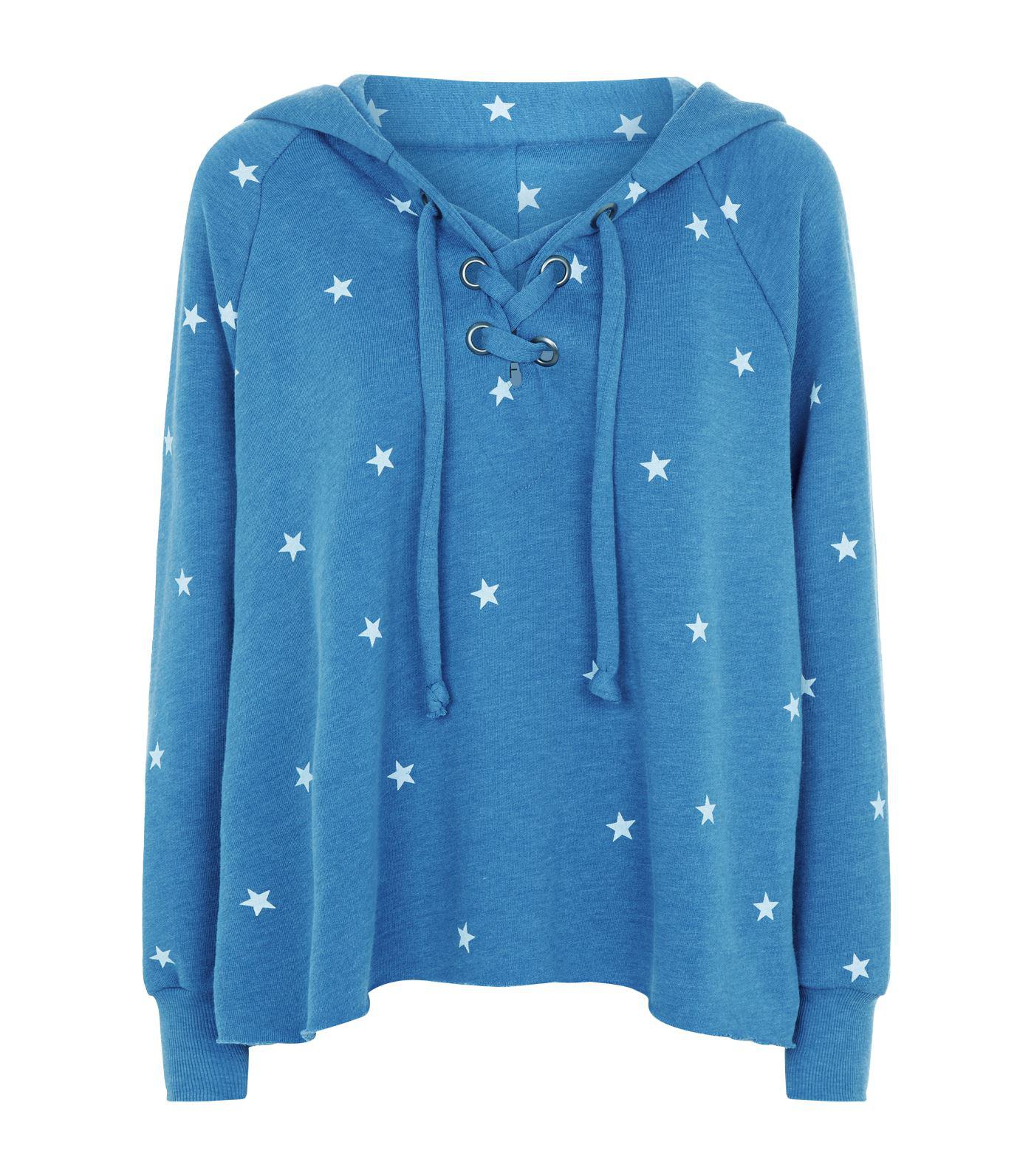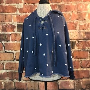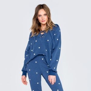Wildfox Blue Football Star Hutton Lace Up Hoodie Curtsy curtsyapp.com