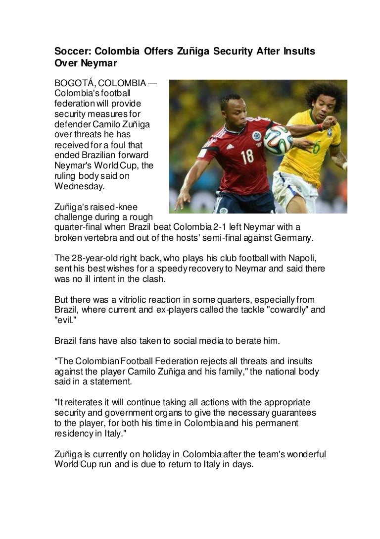 Juan Zuniga Apologises For Neymar Tackle Which Ended Brazilian S